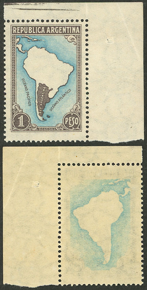 1P. Map printed on DUTCH PAPER, also with blue offset impression on back, MNH (+30%), excellent quality! (Image)