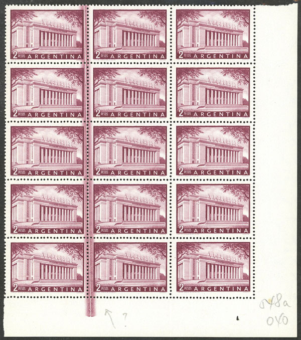 2P. Eva Perón Foundation, corner block of 15 with variety: THICK vertical lines between the first and second columns, excellent! (Image)