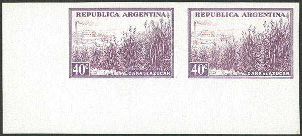 40c. Sugar cane, printed on chalky paper, fantastic IMPERFORATE PAIR with sheet corner, MNH (+50%), superb! (Image)
