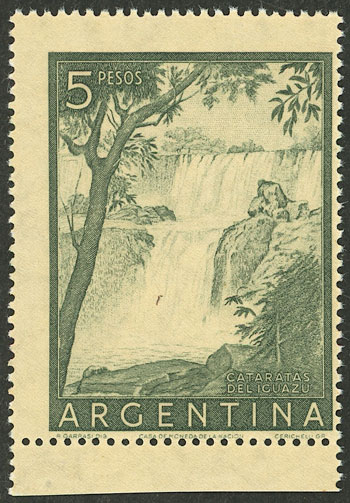 GJ.1053ASG, 5P. Iguazú Falls, PRINTED ON GUM, very fine quality, rare! (Image)