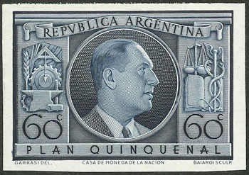 1951 60c. Juan Perón, prepared but NOT ISSUED, MNH, excellent quality! (Image)