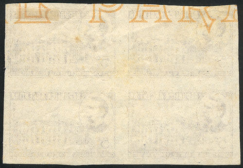 block of 4 with end-of-roll DOUBLE PAPER variety, VF! (Image)