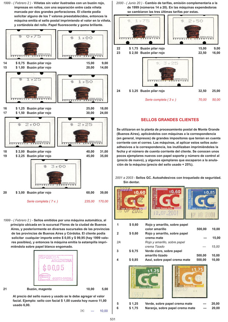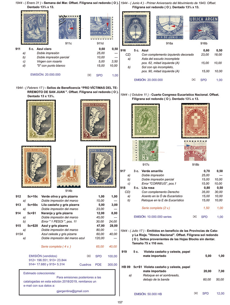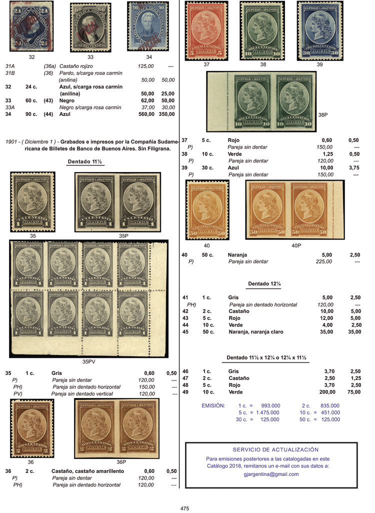 1   imageJALIL Guillermo & GOTTIG José Luis: Specialized Catalogue of Postage Stamps and Postal History of Argentina (2018/2019 edition), 2 volumes, hardbound, 728 pages. Free downloadable updates will be available for later issues. It includes ALL the Argentina stamps issued up until late 2018, with errors, varieties in perforations, papers, watermarks, etc., with photographs of catalogued varieties, and explanations to help the readers identify the different papers, printings, shades, etc. It also includes complete chapters (with details and varieties) on: Official stamps, telegraph stamps, Ahorro Postal, variable value stamps etc. etc., POSTAL STATIONERIES (old and modern), PRE-STAMP MAIL (with details of each mark) and STAGECOACH MAIL (with good photos of all the existing marks). With fair prices in line with the current market. This is the most important work of its kind ever published on Argentina philately, an essential guide both for beginners and advanced collectors, and also for stamp dealers and investors. IMPORTANT: Heavy lot (3 kilos), shipping costs worldwide from Argentina will be approximately US$60, please bear this in mind before placing your bid. IMPORTANT: You can also purchase the catalogue DIRECTLY at our website www.JalilStamps.com, for a more immediate processing! (Image) (Image-02) (Image-03) (Image-04) (Image-05) (Image-06) (Image-07) (Image-08) (Image-09) (Image-10) (Image-11) (Image-12) (Image-13) (Image-14) (Image-15) (Image-16) (Image-17) (Image-18) (Image-19) (Image-20) (Image-21) (Image-22) (Image-23) (Image-24) (Image-25) (Image-26) (Image-27) (Image-28) (Image-29) (Image-30) (Image-31) (Image-32) (Image-33) (All Images)