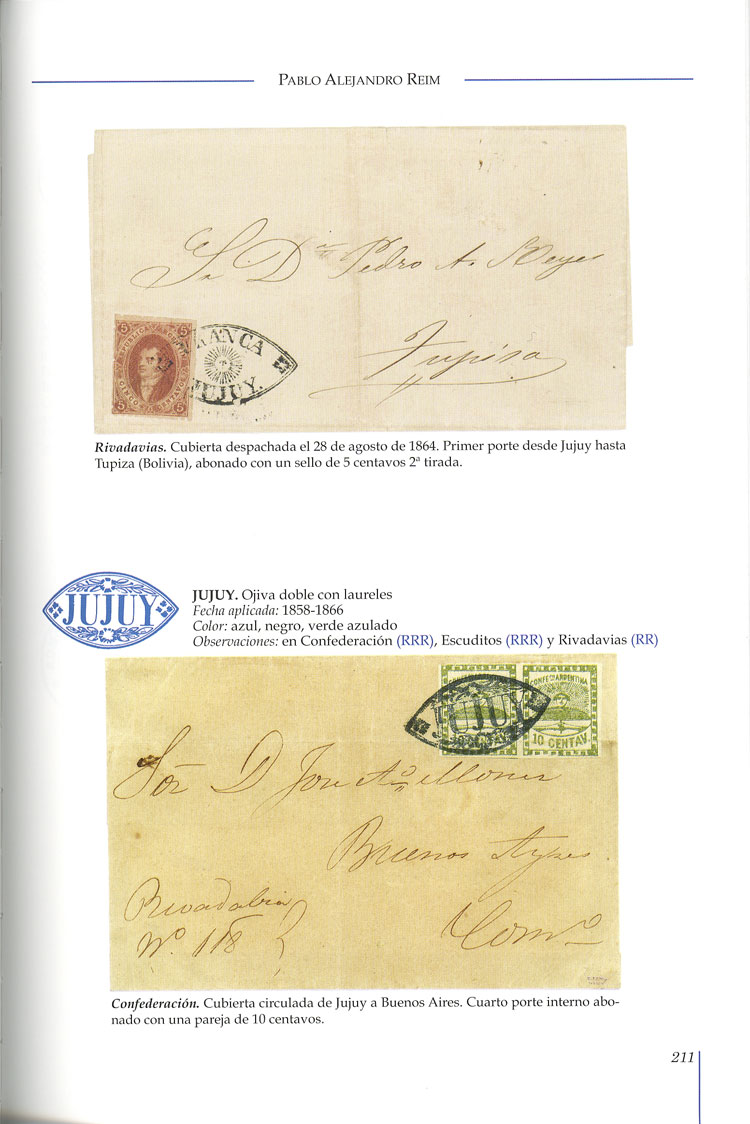 2   image"Joyas Filatélicas de la República Argentina 1862-1867", 337 pages, fantastic book recently published, author Pablo Reim, editor Guillermo Jalil. Excellent work with illustrations in full color of the great pieces and letters of the "Escuditos" and "Rivadavias" issues. It also includes other very interesting chapters: Pre-stamp mail postal marks, cancels applied on classic issues, and a short but attractive introduction to Argentine stagecoach mail. It is a very special work that will become essential in any good library for permanent reference (Image) (Image-02) (Image-03) (Image-04) (Image-05) (Image-06) (Image-07) (Image-08) (Image-09) (Image-10) (Image-11) (Image-12) (Image-13) (Image-14) (Image-15) (Image-16) (Image-17) (Image-18) (Image-19) (Image-20) (Image-21) (Image-22) (Image-23) (Image-24) (All Images)
