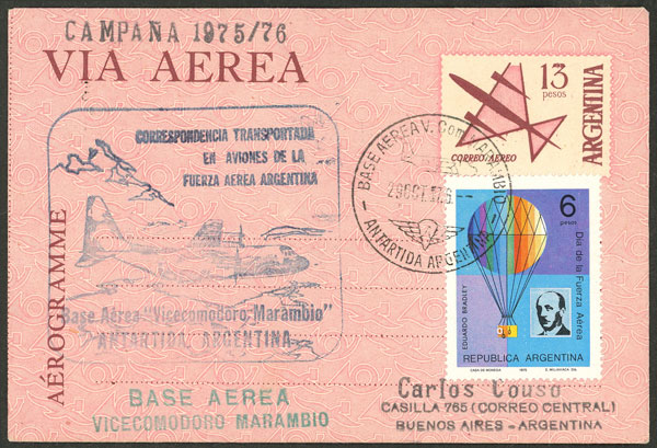 19   image$13 Aerogram uprated with $6, sent from Marambio Antarctic station to B.Aires on 29/OC/1976, several marks of the Air Force + arrival (Image) (Image-02) (All Images)