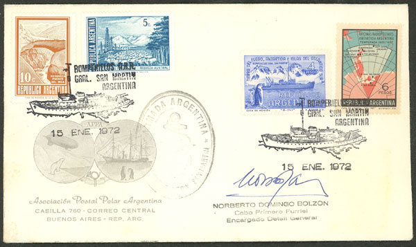 9   imageCover with postmark of icebreaker ARA General San Martín for 15/JA/1972, signed by officer (Image)