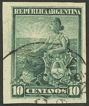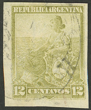 12c. olive green, imperforate (not catalogued), very rare! (Image)