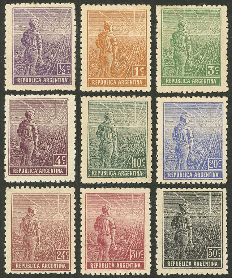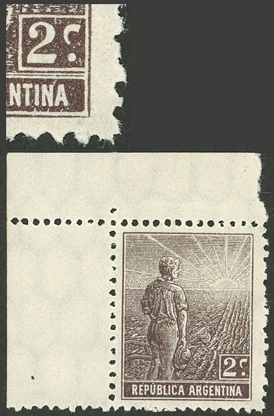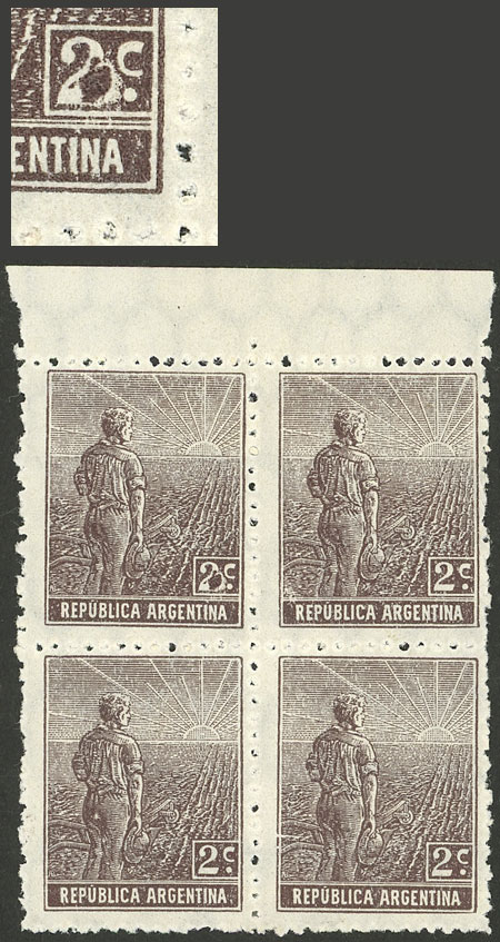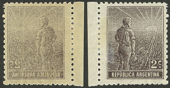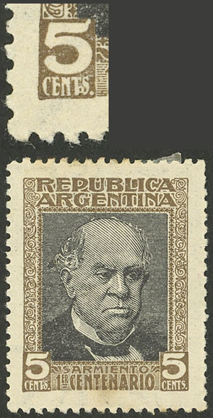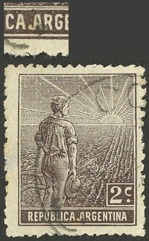 with VARIETY: first "A" of ARGENTINA with cedilla (pos.20), small thin on back, excellent front, rare! (Image)