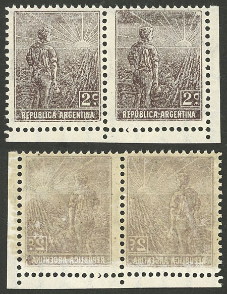 corner pair, with VARIETY: Offset impression on back, VF (Image)