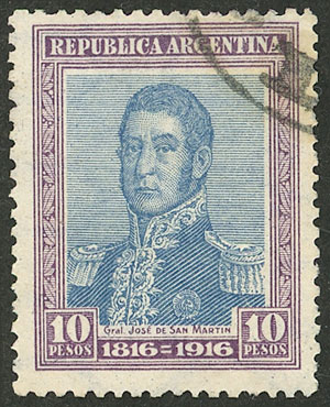 $10 Centenary of Independence, cancel strike in one corner, VF quality (Image)