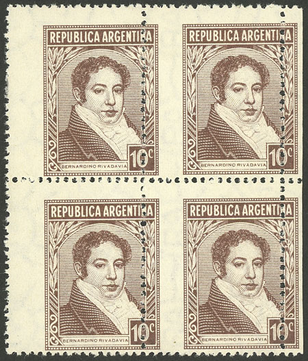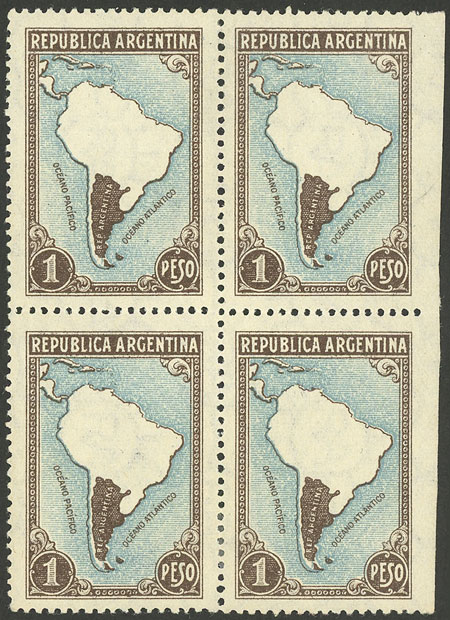 marginal block of 4, Pettigiani catalog value US$16 + 30% (MNH) (Image)