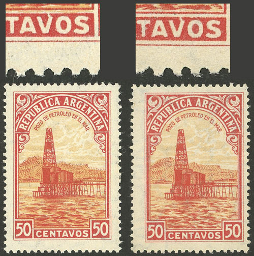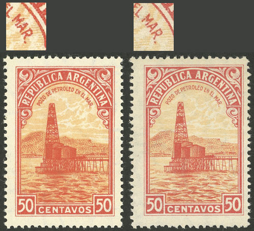 printed on 2 different papers, both with VARIETY: spot above "V" of CENTAVOS (Image)