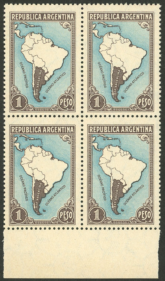 $1 Map with borders, in marginal block of 4, excellent (Image)