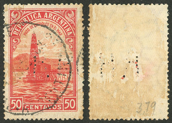 with broken "B.H." perfin (Bonduel Hermanos), rare (Image)