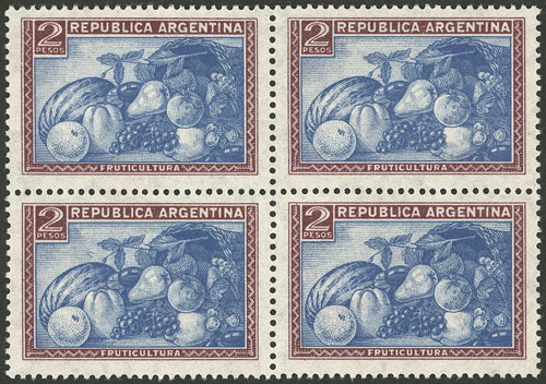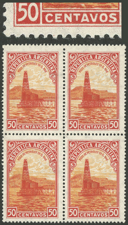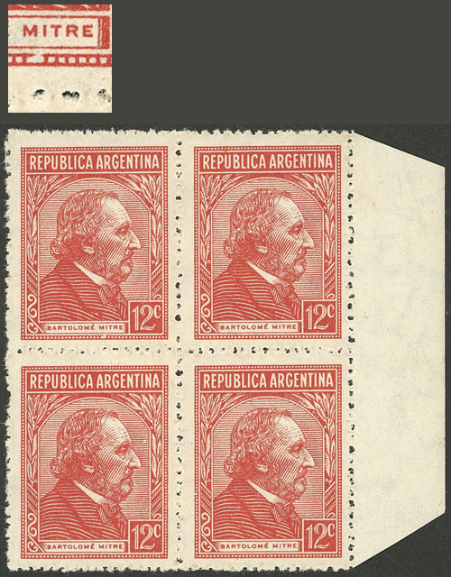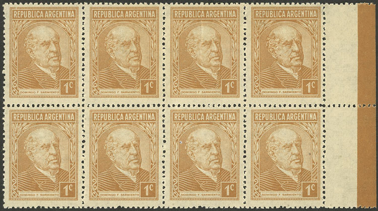 marginal block of 8 printed on gaufré paper (papel gofrado) (Image)