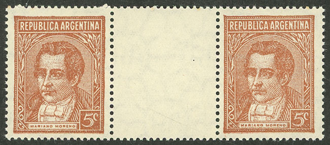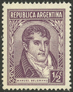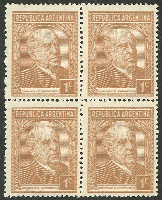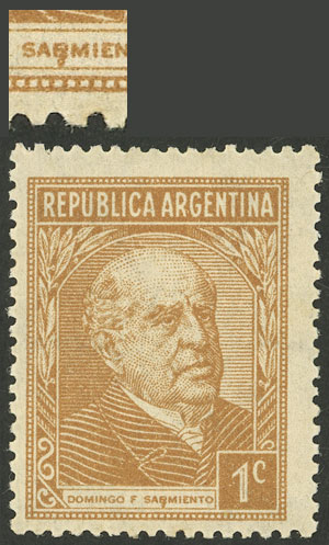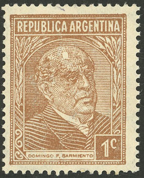 printed on gaufré paper (papel gofrado), with variety: "R" of SARMIENTO deformed (Image)