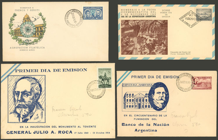 GJ.850 + other values, 12 stamps of 1940s on FDC covers (Image)