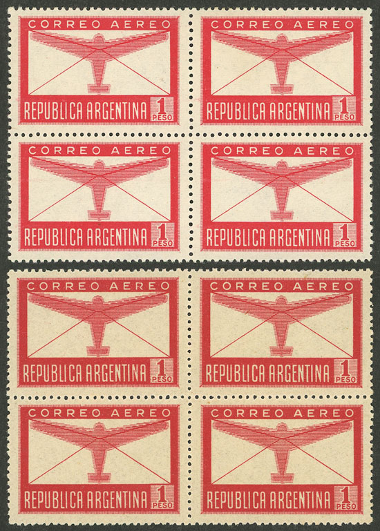 airmail, blocks of 4 printed on white + cream papers (Image)