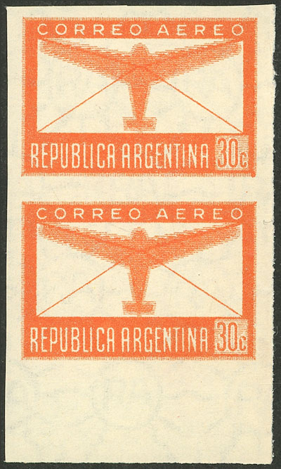 airmail, imperforate pair with sheet margin, excellent quality (Image)