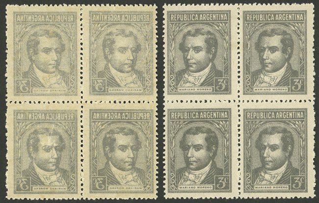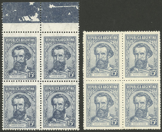 marginal block of 4, the left stamps with DOUBLE impression, one light, excellent (Image)