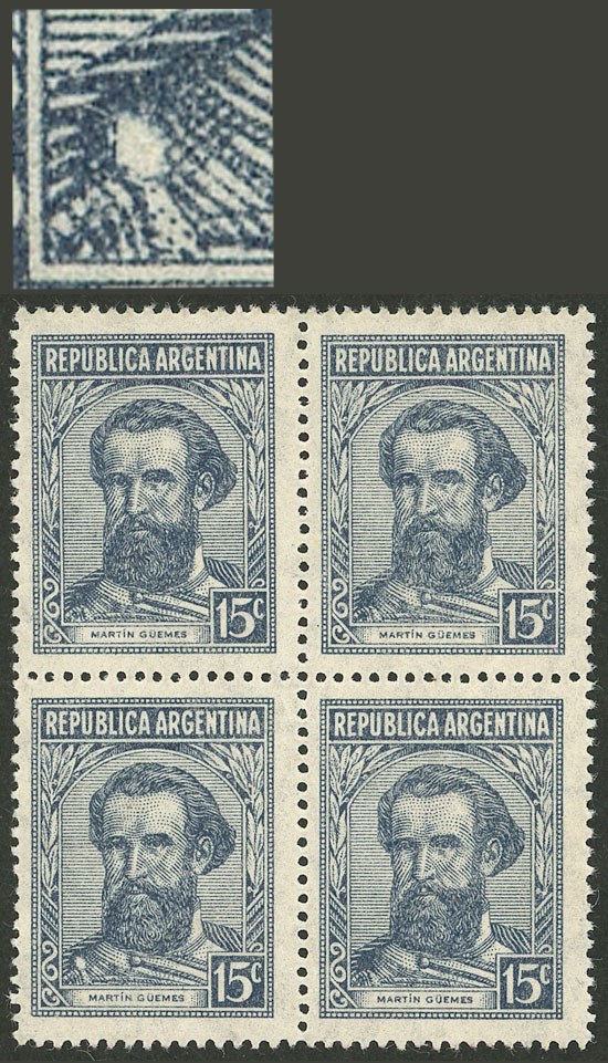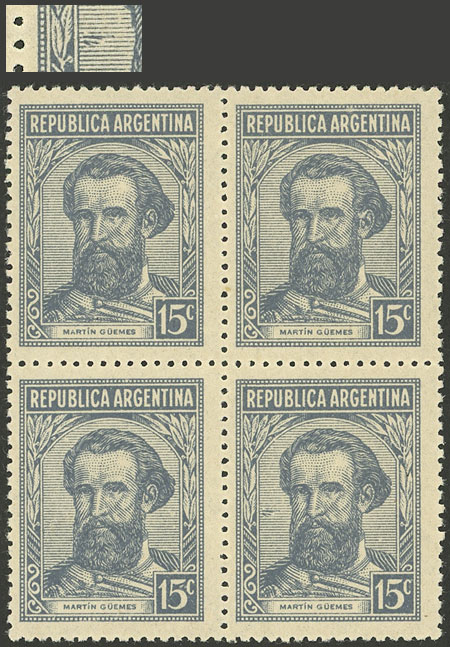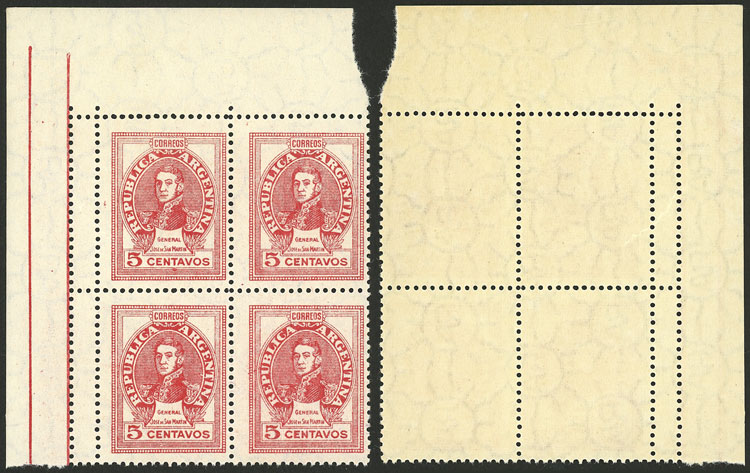 corner block of 4 with VARIETY: double vertical perforation producing 2 small left labels, VF quality (Image)