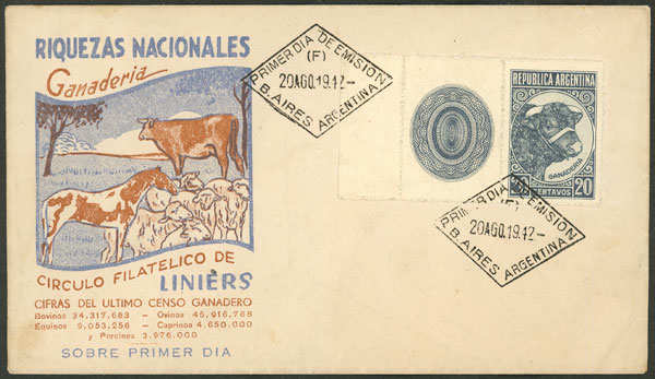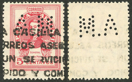 with "A.M" perfin (Agencia Marítima del Río de la Plata), rare (Image)
