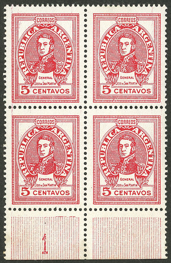 block of 4 with lower sheet margin with "1" (Image)