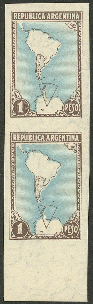 $1 Map with Antarctica, imperforate pair with sheet margin, VF (Image)
