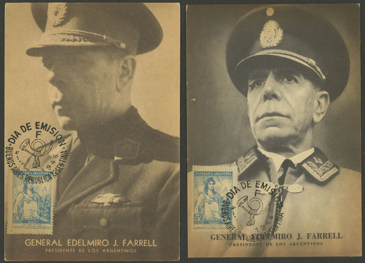 on 2 different cards with image of president Gral. E.J. Farrell, both with first day postmark (Image)