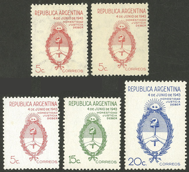 GJ.896/900, Coat of arms, cmpl. set including 5c. on unsurfaced paper with round sun wmk + straight rays wmk (Image)