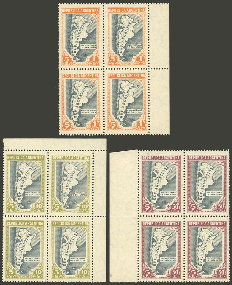 GJ.912/14, Map of Argentina, set without the high value in blocks of 4, excellent quality (Image)