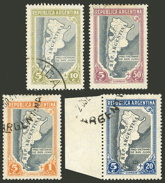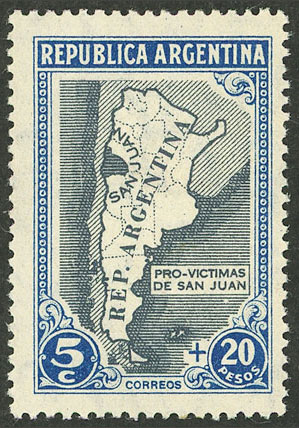 5c+$20 San Juan earthquake victims (map), in light blue and slate gray, excellent (Image)