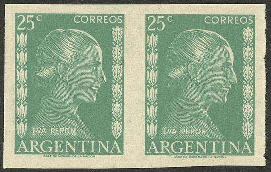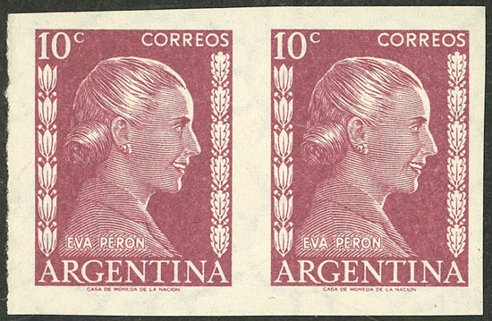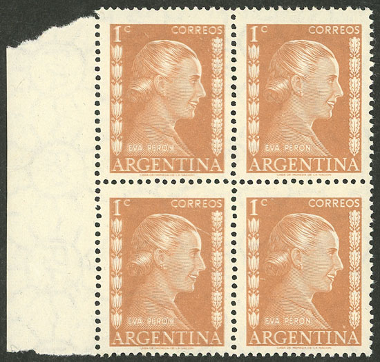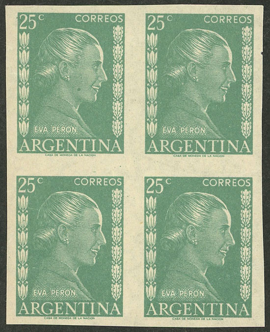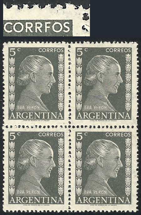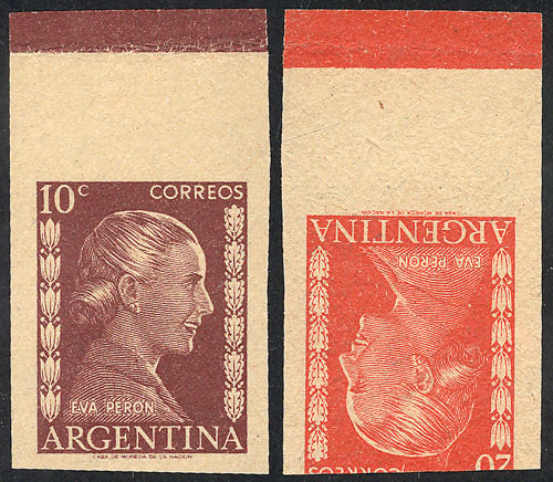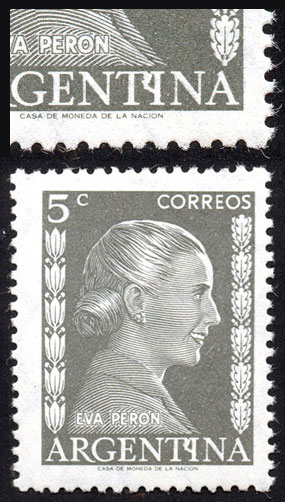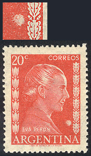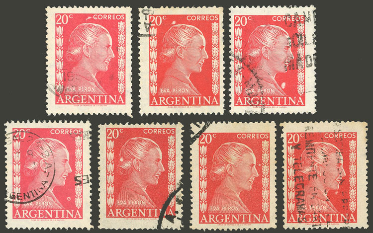 GJ.1006/6A, 20c. Eva Perón, 7 stamps all with different VARIETIES, some very attractive and uncommon! (Image)