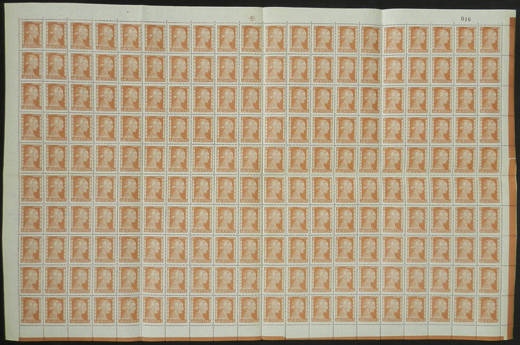 cmpl. sheet of 200 stamps, excellent to look for and identify minor varieties that it surely includes, few examples with small stain on back, most MNH (Image)