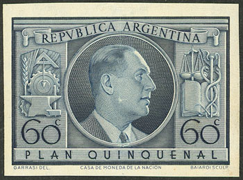 GJ.1000ZA, UNISSUED, 60c. Juan Peron, with watermark, in lilac-blue, small defect (Image)