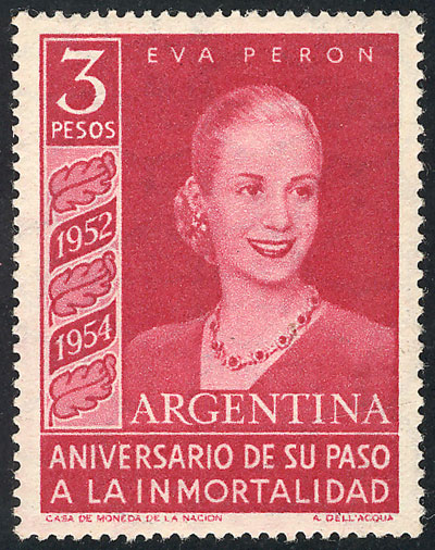 GJ.1019/21, Eva Perón, 3 high values of the set, low start (Image)