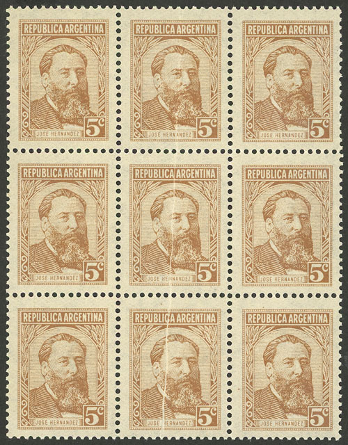 block of 9 with VARIETY: Paper fold along the central stamps (Image)