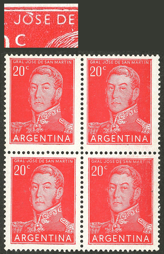 block of 4, one with VARIETY: "JÓSE" with accent over the "O" (Image)