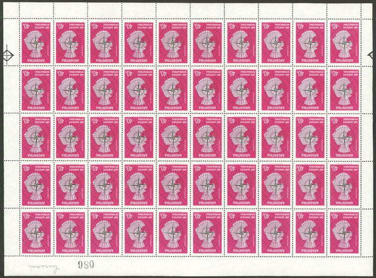 Map of Antarctica, complete sheet of 50 stamps, VF (Image)
