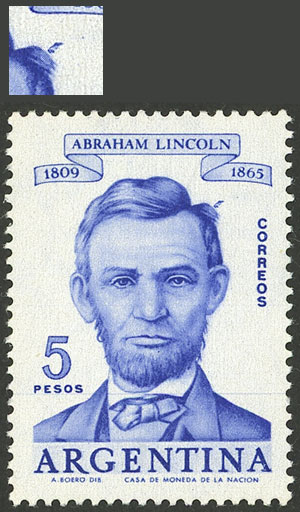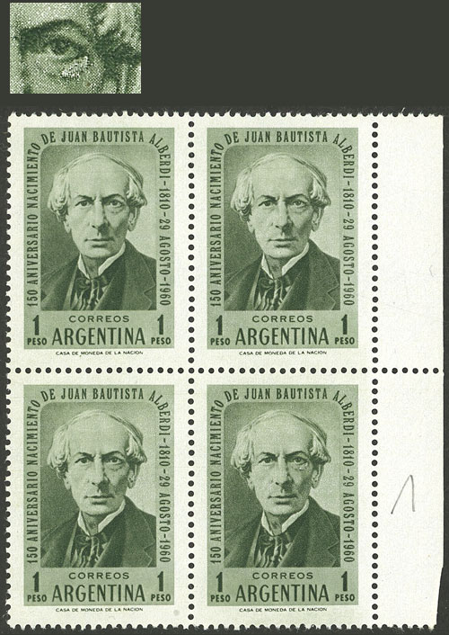 marginal block of 4, one with VARIETY: retouch below the right eye (Image)