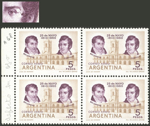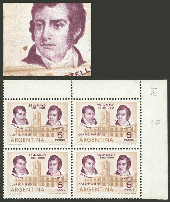 marginal block of 4, one with VARIETY: Castelli with stye (Image)