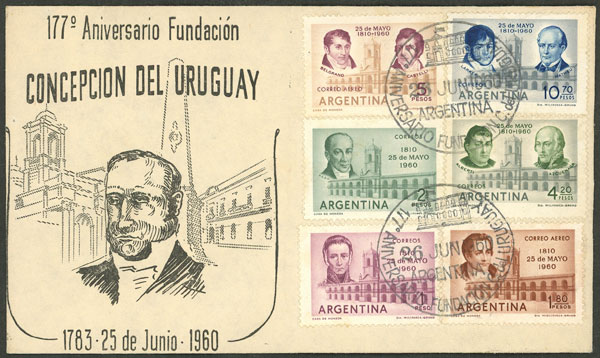 GJ.1169/1174, cmpl. set (6 values) on a cover with postmark commemorating 177th anniversary of Concepción del Uruguay (Image)