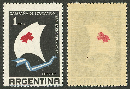 with VARIETY: offset impression of red cross on back (Image)