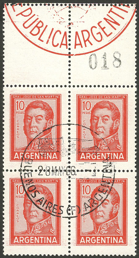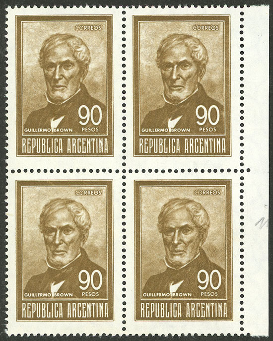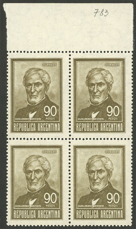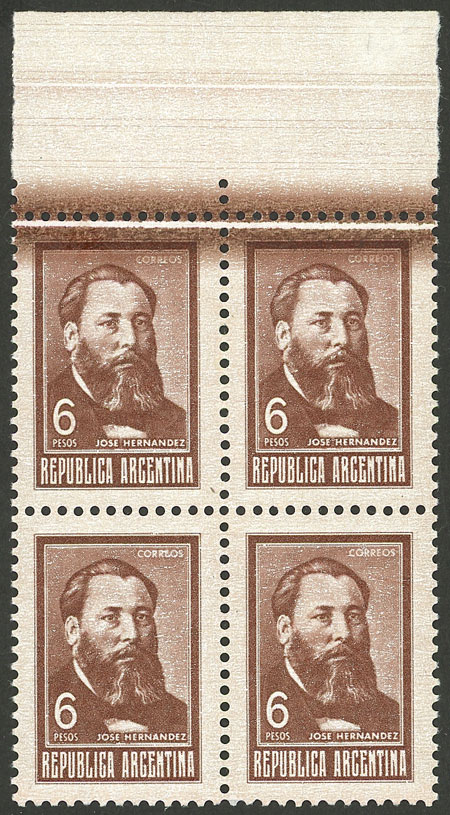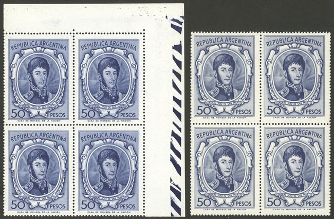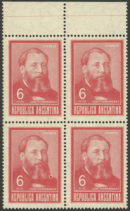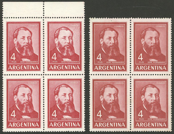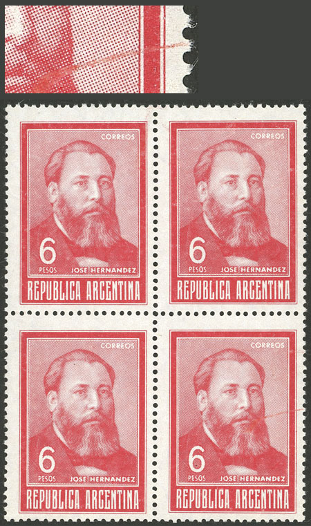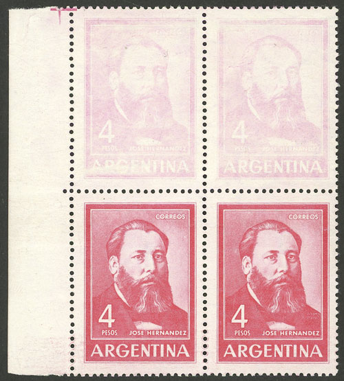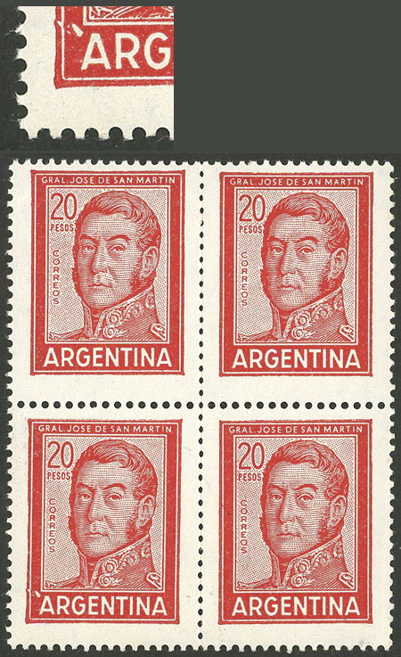 1, block of 4, one with VARIETY: first "A" of ARGENTINA with accent (Image)