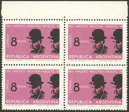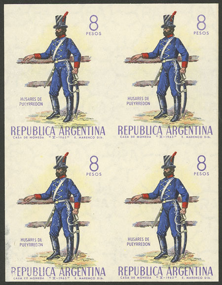 GJ.1325P, IMPERFORATE block of 4, the gum is somewhat darkened, all the same VF quality (Image)