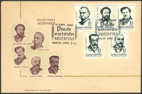 GJ.1386/90, Writers, cmpl. set (5 values) on FDC cover (Image)