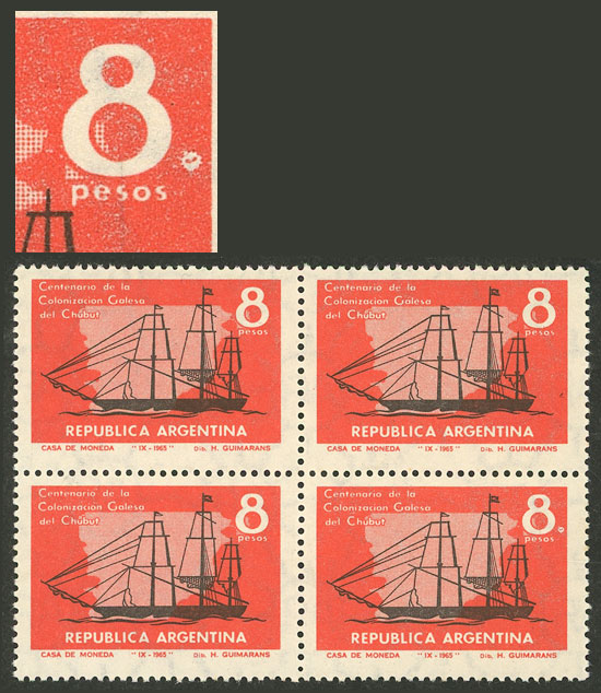 Ship, block of 4, one with VARIETY: "8 ." (period after the value) (Image)