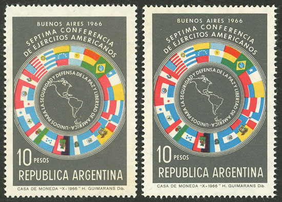 Conference of American Armies (flags + map), 2 proofs in red + light blue and olive gray + yellow, excellent quality (Image)