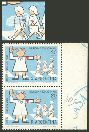 marginal pair, one stamp with VARIETY: cloud behind the first pupil (pos.40) (Image)