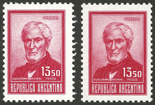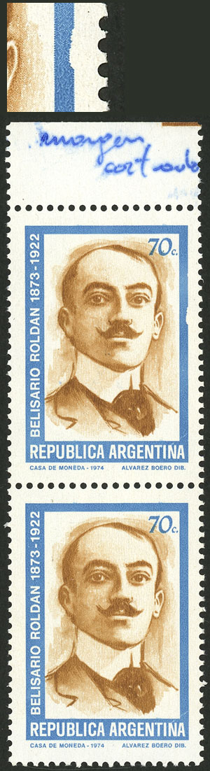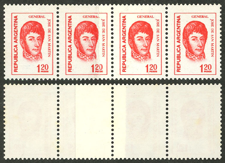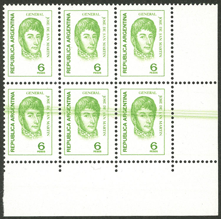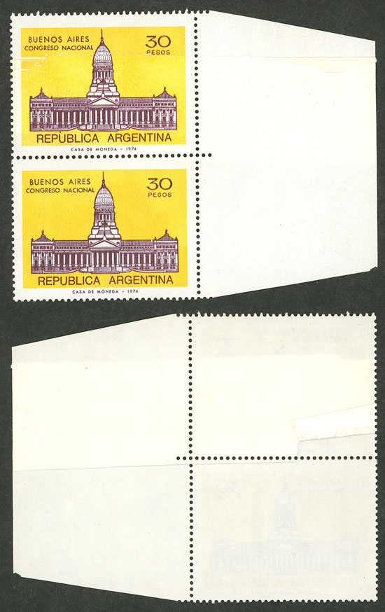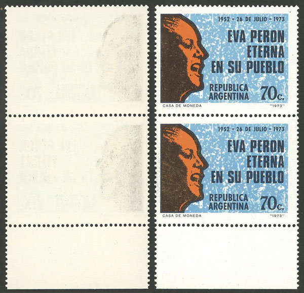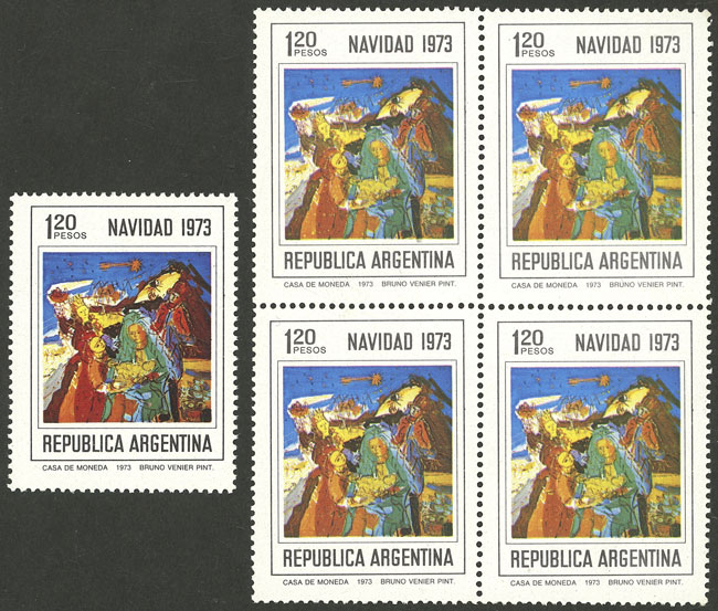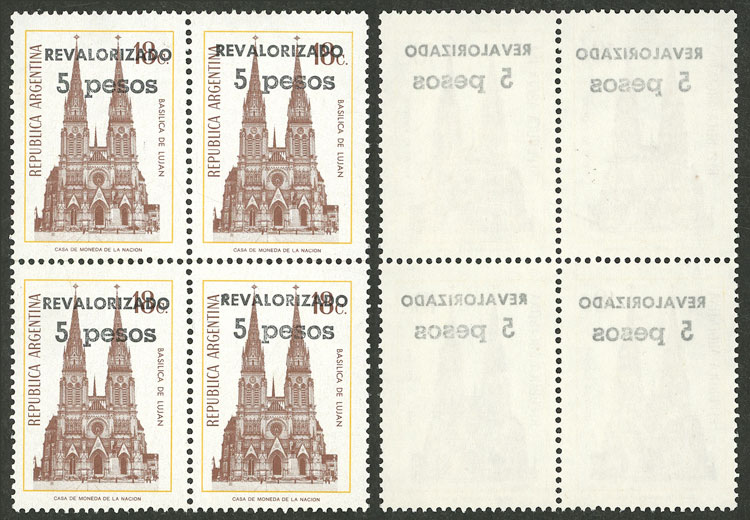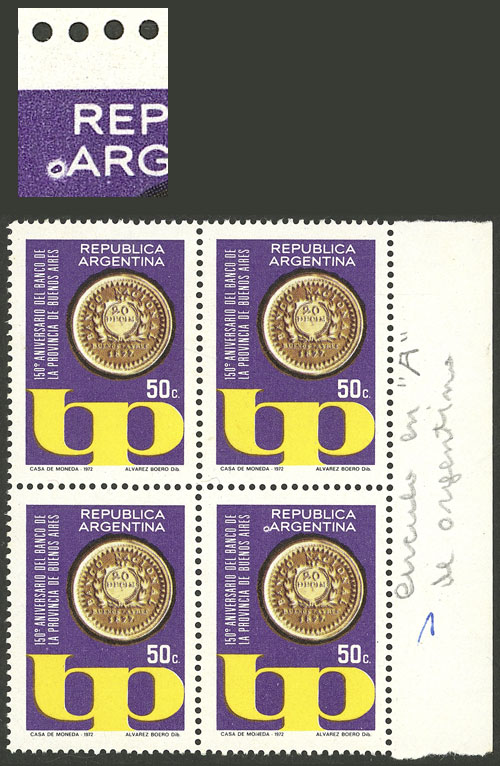 marginal block of 4, one with VARIETY: circle in front of "ARGENTINA" (Image)